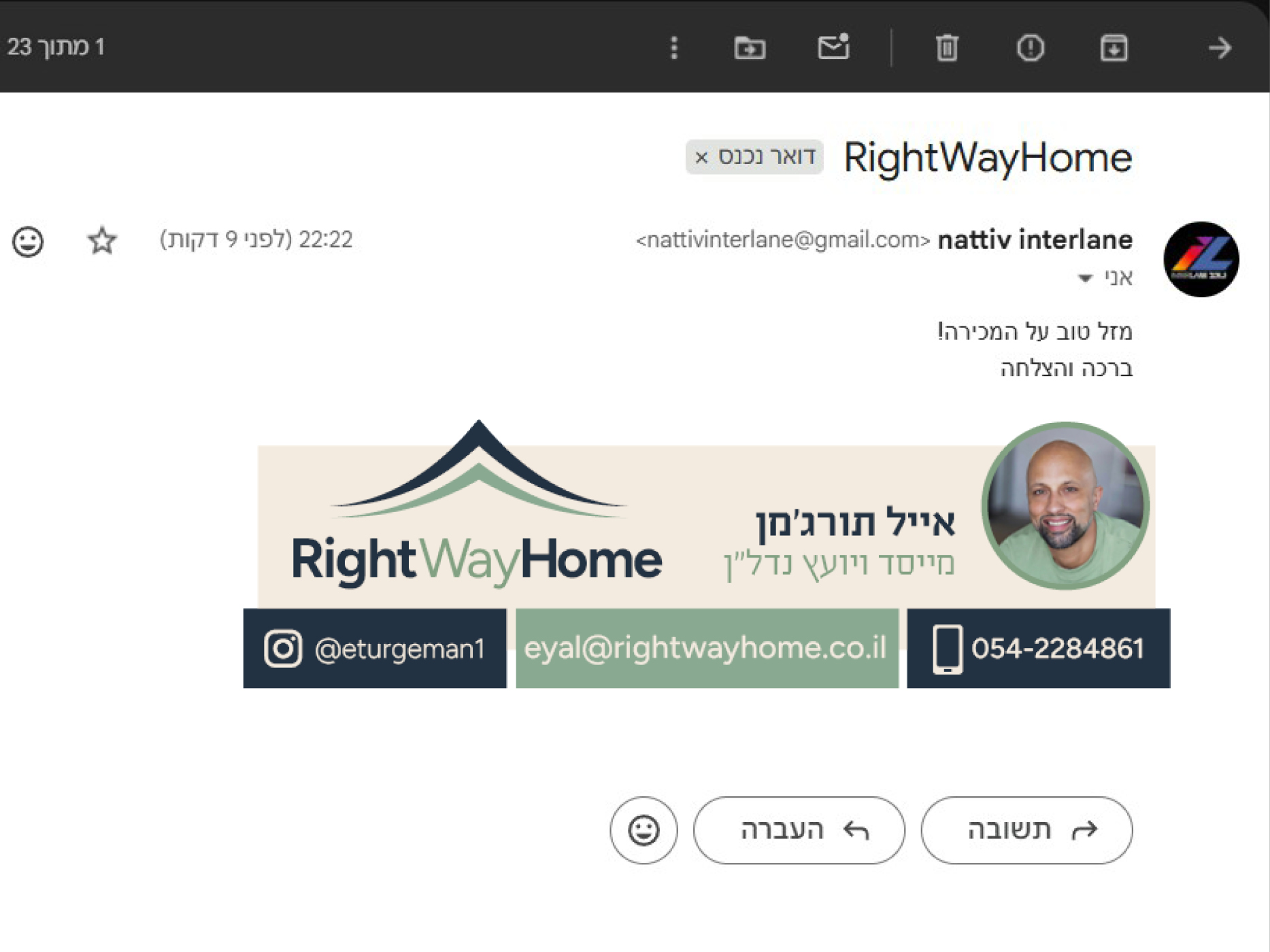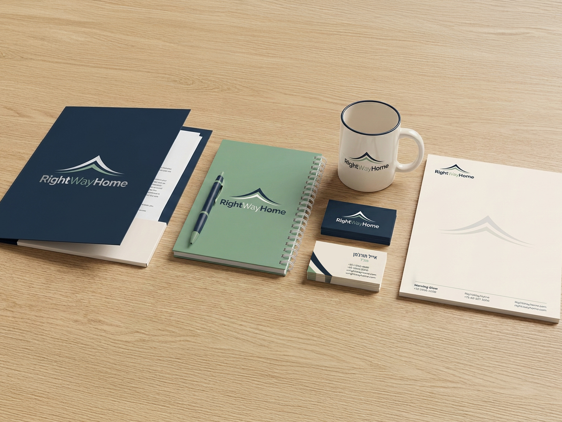 המותג RightWayHome נולד מתוך תפיסה שתיווך הוא הרבה מעבר לעסקת נדל"ן; הוא מסע של ליווי, הכוונה וחיבור מדויק בין אנשים למקום המבטחים שלהם. מטרת המיתוג הייתה ליצור זהות המאזנת בין שני עולמות מנוגדים לכאורה: העולם הנדל"ני המייצג יציבות וקורת גג, והעולם האנושי המייצג זרימה, רכות והתקדמות. יצרנו אייקון מינימליסטי המשלב שתי צורות חופפות: הגג (יציבות, נדל"ן, ביטחון) והחץ (התקדמות, הובלה, מטרה). השילוב יוצר מסר שלם: אנחנו נוביל אתכם בבטחה אל היעד. בניגוד לאגרסיביות המקובלת לעיתים בתחום, בחרנו בקו עיצובי זורם ומעוגל. הרכות הזו משדרת אנושיות ופתיחות, ומדגישה שהתהליך נעשה בצורה נעימה, בטוחה ונכונה עבור הלקוח.